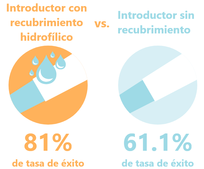 En comparación con los introductores sin recubrimiento, los introductores con recubrimiento hidrófilico reducen la incidencia de espasmo de la arteria radial que puede provocar la interrupción del procedimiento, incomodidad del paciente y falla del procedimiento4